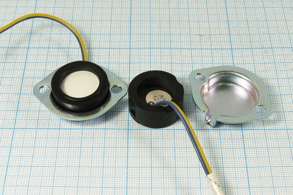 Распылительная головка JHB20-17A2082 для создания водяного тумана. Диаметр 25мм, частота 1,7МГц. В данном изделии пьезоэлемент закреплён под небольшим углом к уровню заливаемой жидкости. Отдельно можно приобрести металлический держатель для надежного крепления MH-42-34-7,7